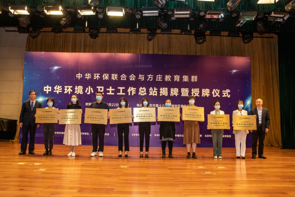 在今天举行的揭牌暨授牌仪式上,来自北京市方庄教育集群多个学校的十九名中小学生获颁“中华环境小卫士”称号。“中华环境小卫士”代表还在揭牌暨授牌仪式上宣读了他们向社会发出的“珍爱地球 人与自然和谐共生”倡议书。倡议书提出,要将环境意识和行动贯穿于日常生活,深入学习生态文明、绿色发展、资源节约、环境保护、垃圾分类、碳达峰、碳中和等相关知识。积极融入生态环境保护主题活动,利用“植树节”“世界水日”“世界地球日”“六五环境日”等环保节日,参与多种形式的社会环保实践活动,培养环保责任感和环保意识、养成环保习惯,做生态环境保护的主动引导者。