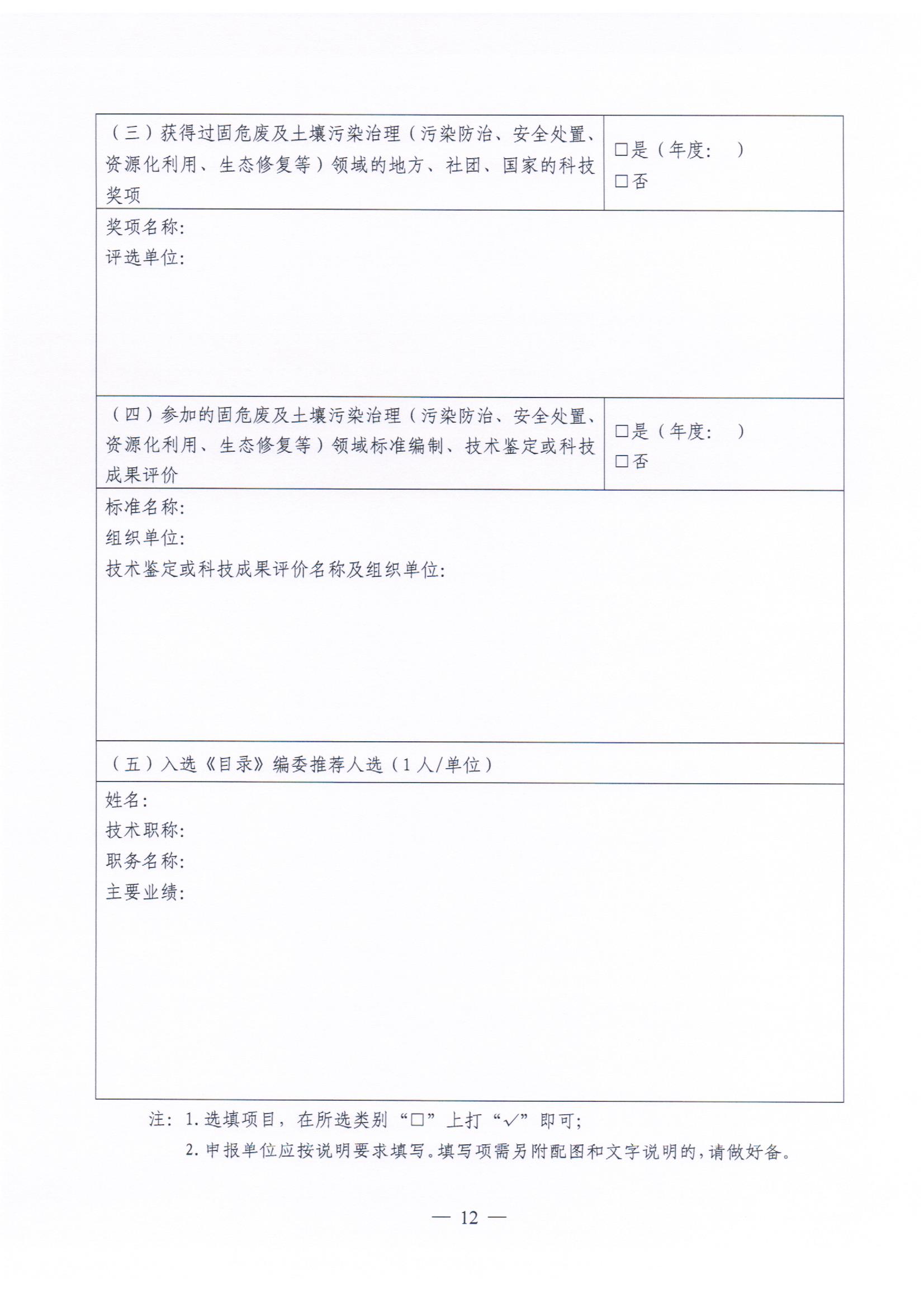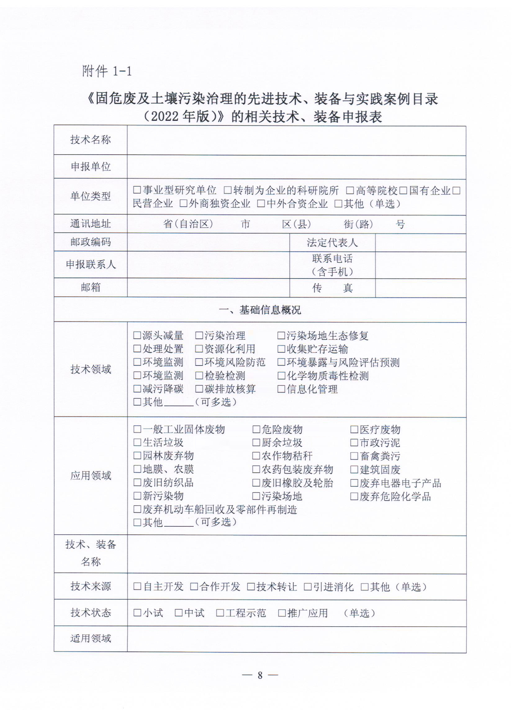 《固危废及土壤污染治理的先进技术、装备与实践案例目录(2022年版)》的相关技术、装备申报表 |