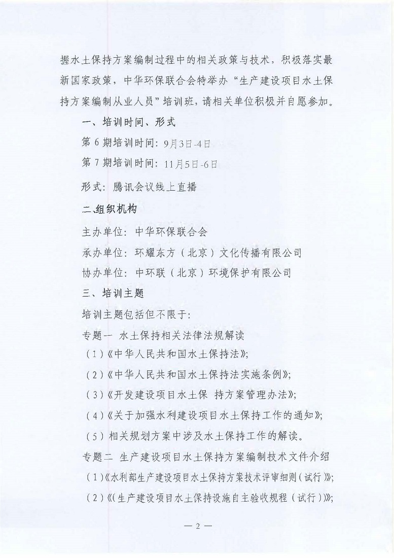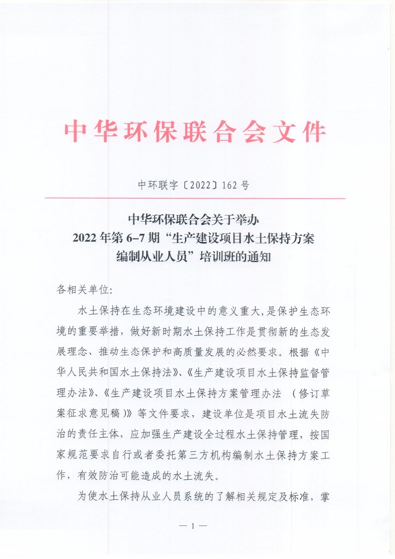 关于举办2022年第6-7期“生产建设项目水土保持方案编制从业人员”培训班的通知
