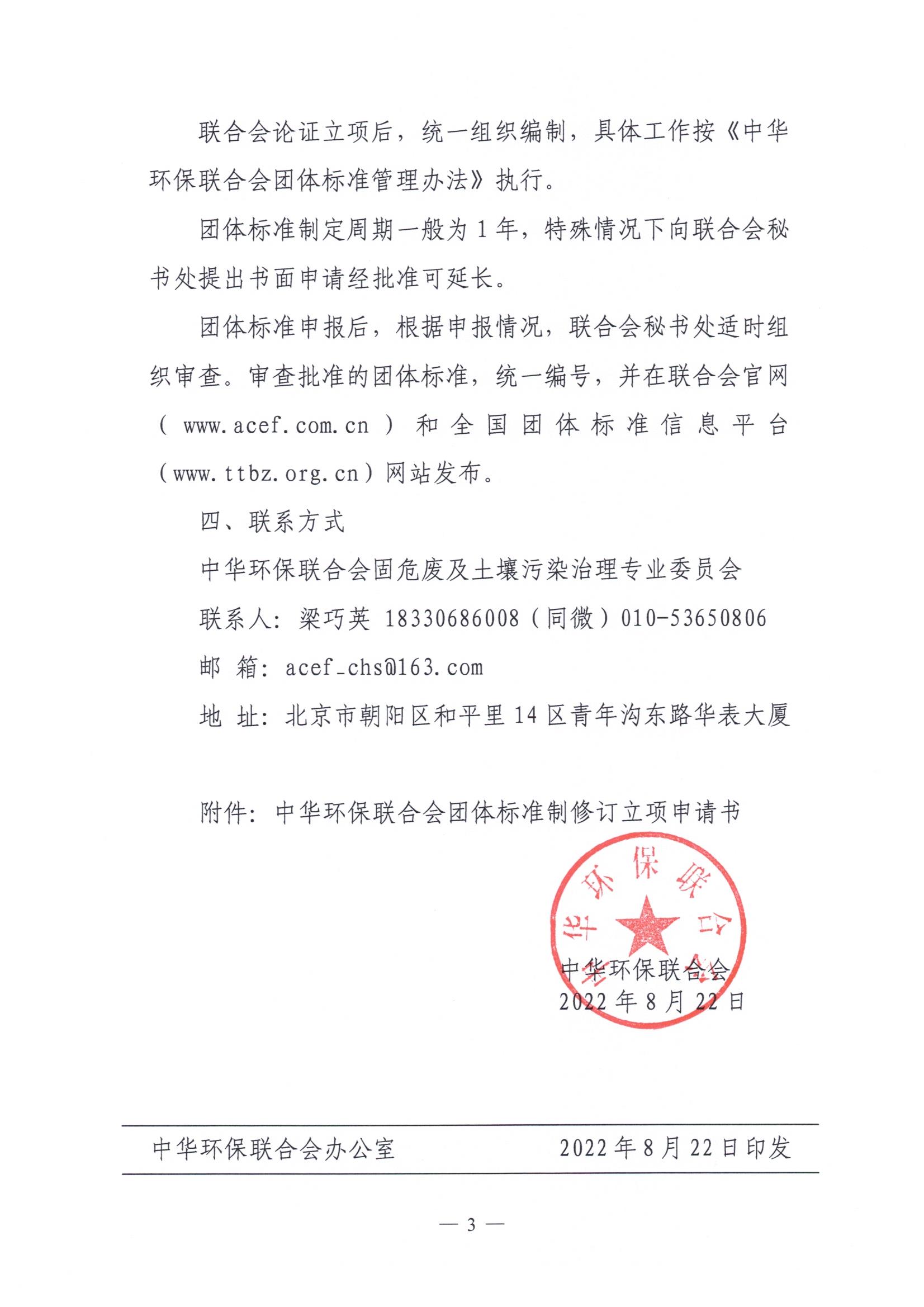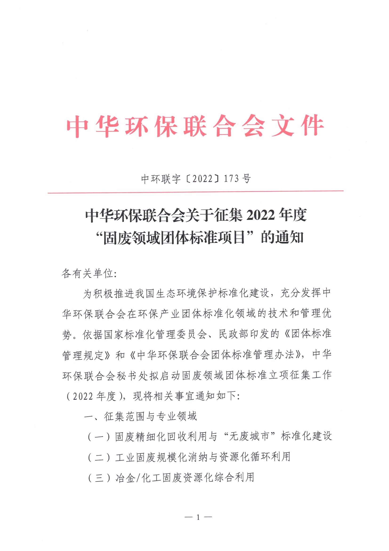 关于征集“固废领域团体标准项目”的通知(2022年度)