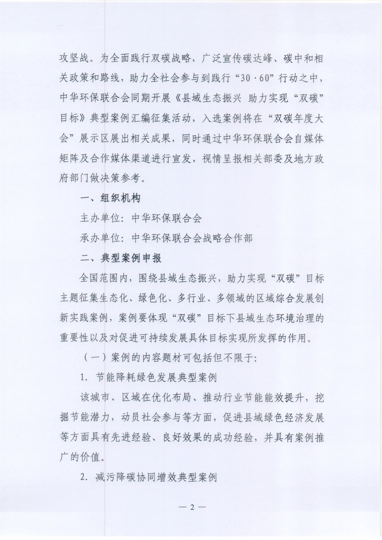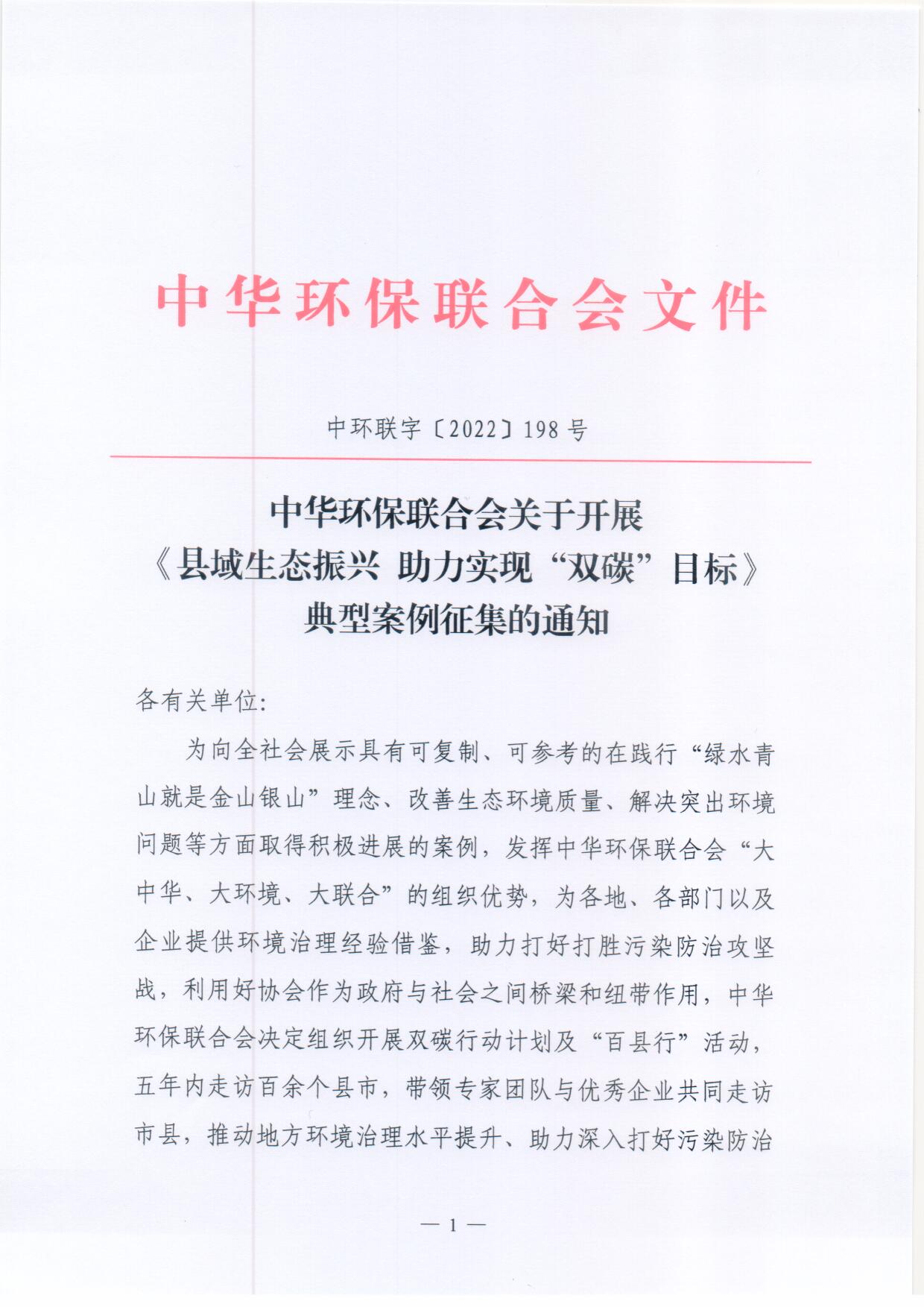 关于开展《县域生态振兴 助力实现“双碳”目标》典型案例征集的通知