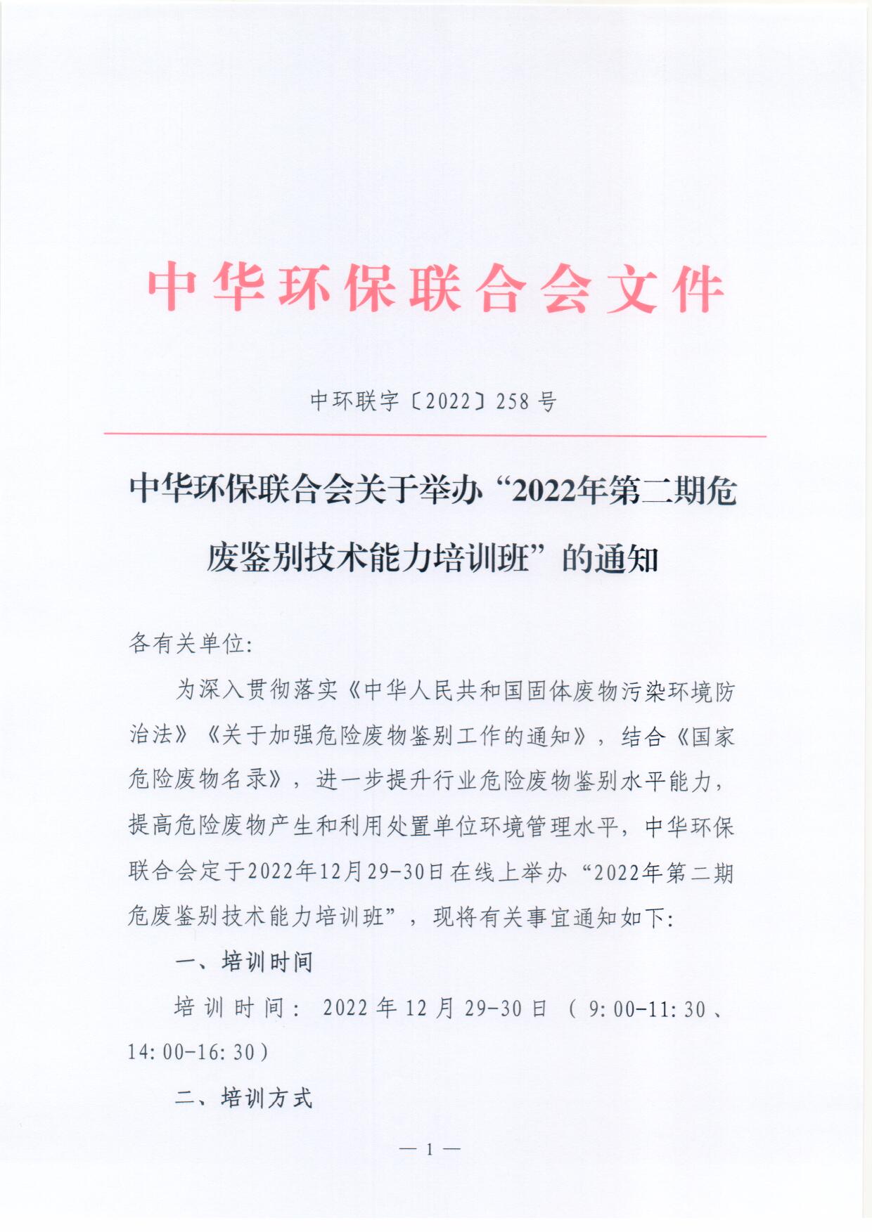 关于举办“2022年第二期危废鉴别技术能力培训班”的通知