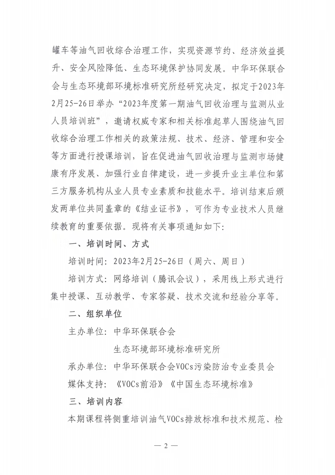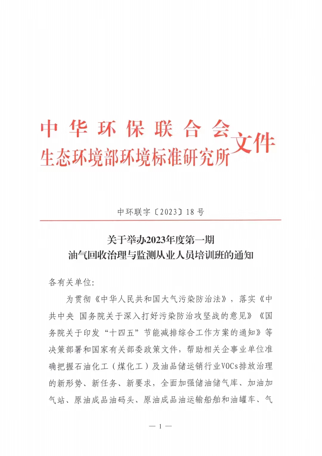 关于举办2023年度第一期油气回收治理与监测从业人员培训班的通知