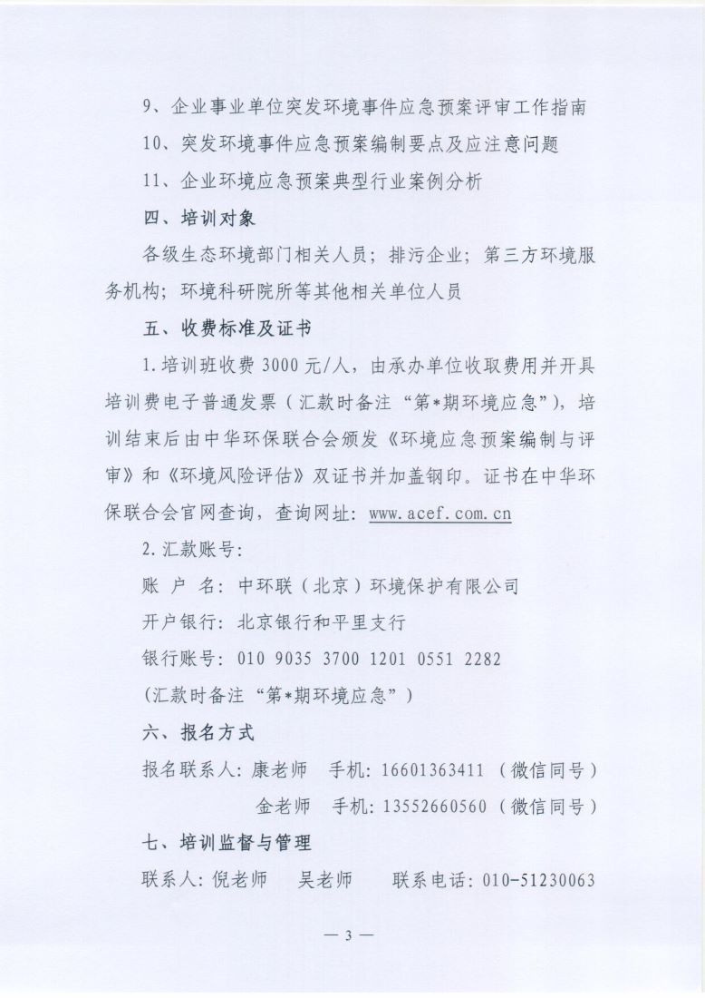 关于举办第16-19期环境应急预案编制与评审、环境风险评估从业人员培训班的通知