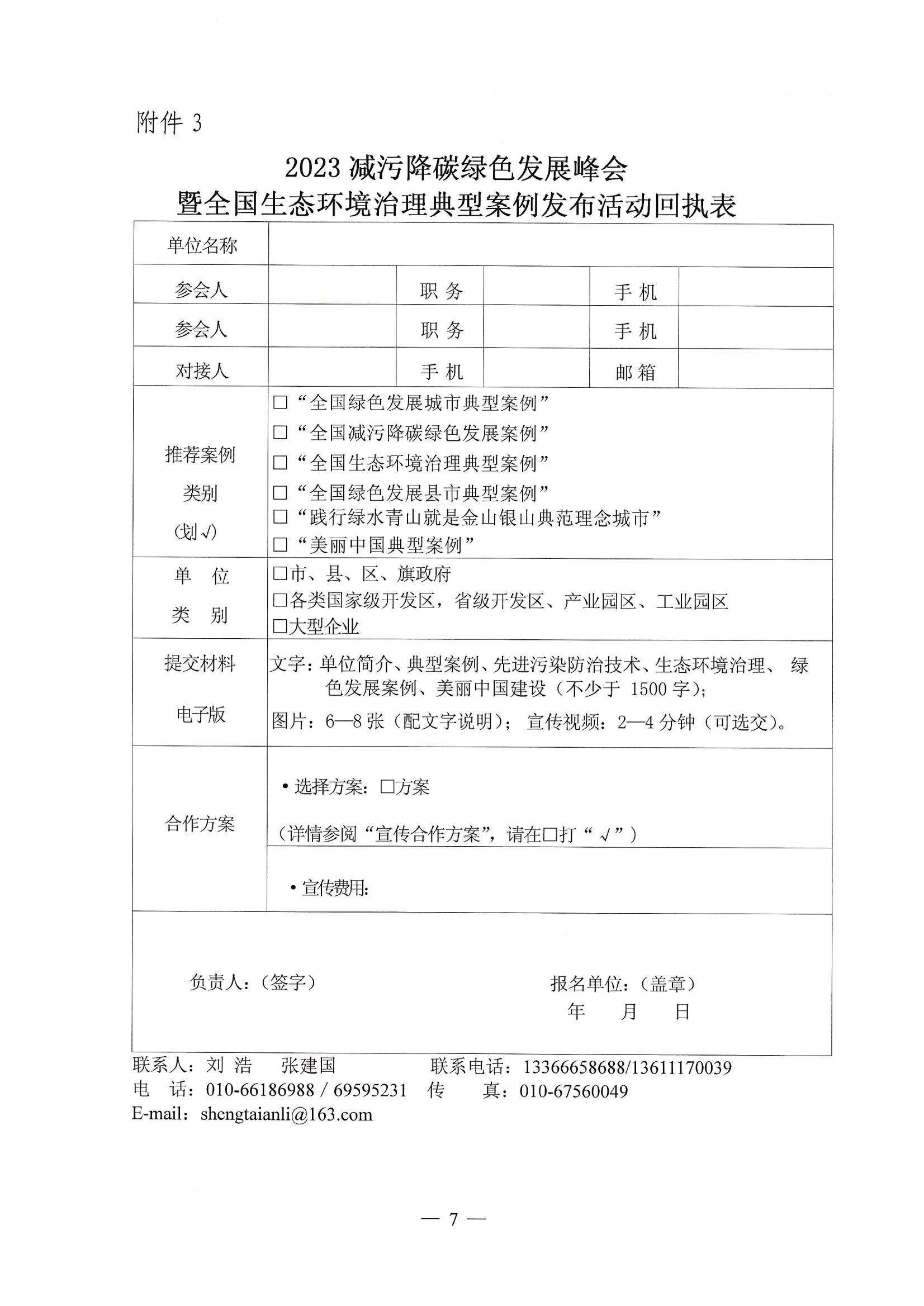 2023减污降碳绿色发展峰会暨全国生态环境治理典型案例发布活动回执表