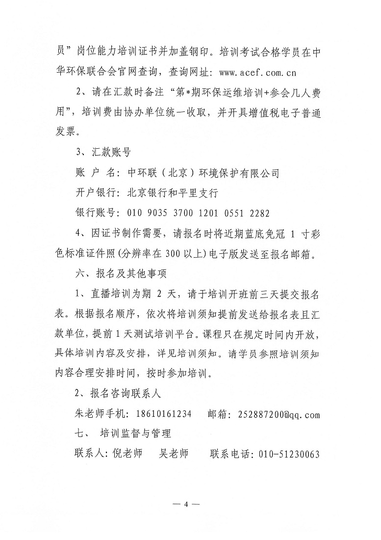 关于举办第6期“环保设施运营操作技术岗位能力”网络培训班的通知
