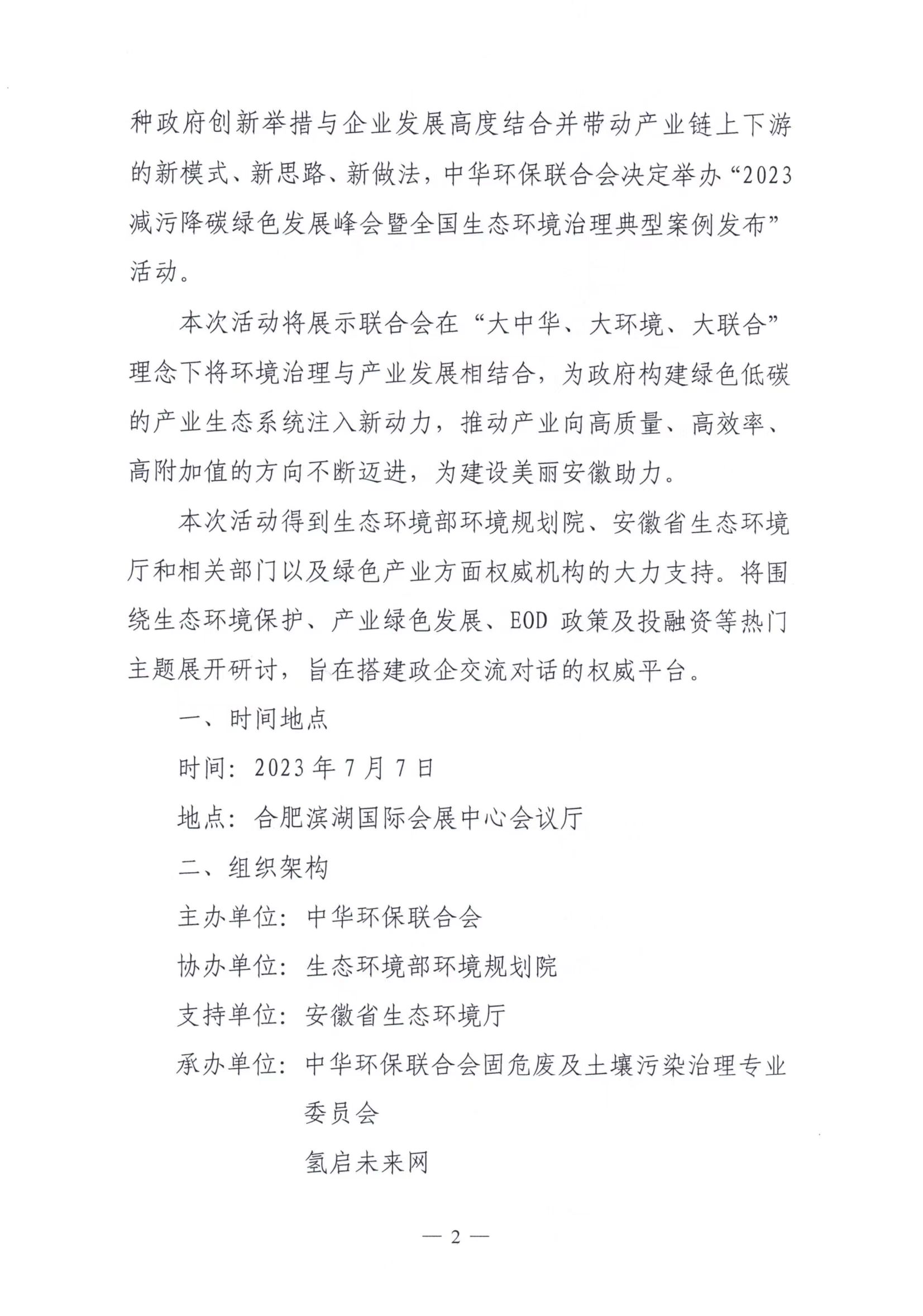 关于召开“2023减污降碳绿色发展峰会暨全国生态环境治理典型案例发布”通知 (第三轮)