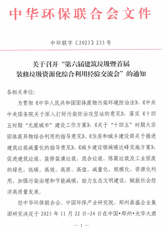 关于召开“第六届建筑垃圾暨首届装修垃圾资源化综合利用经验交流会”的通知