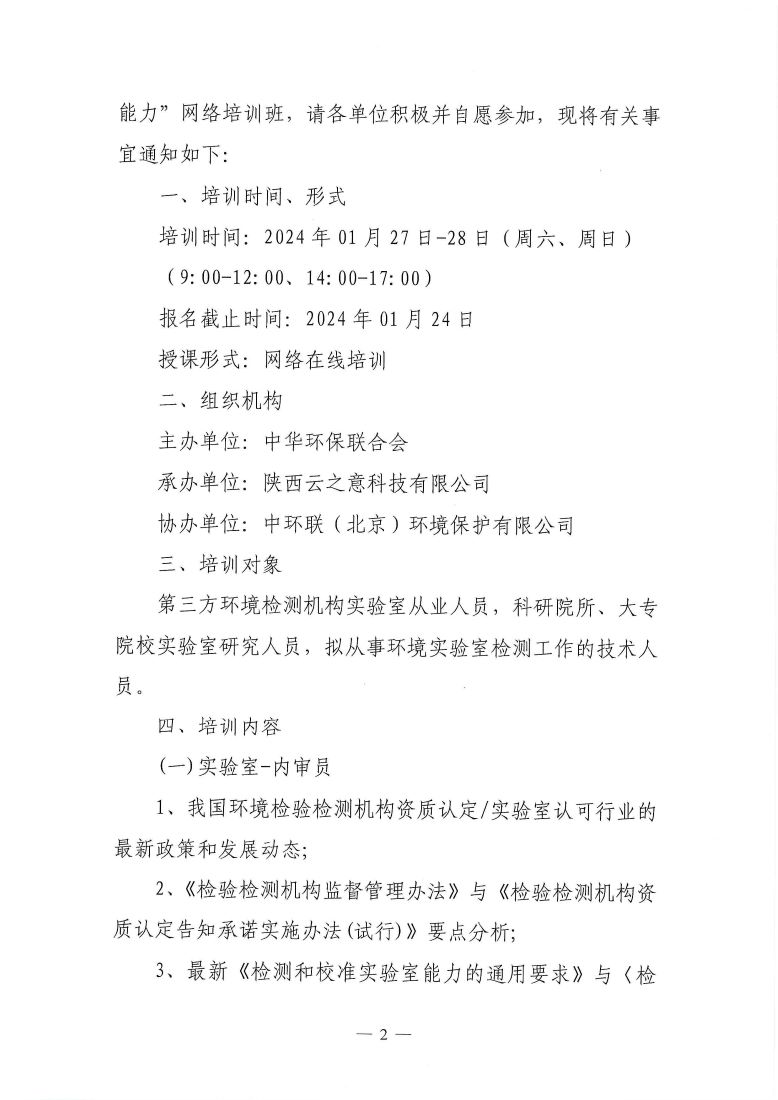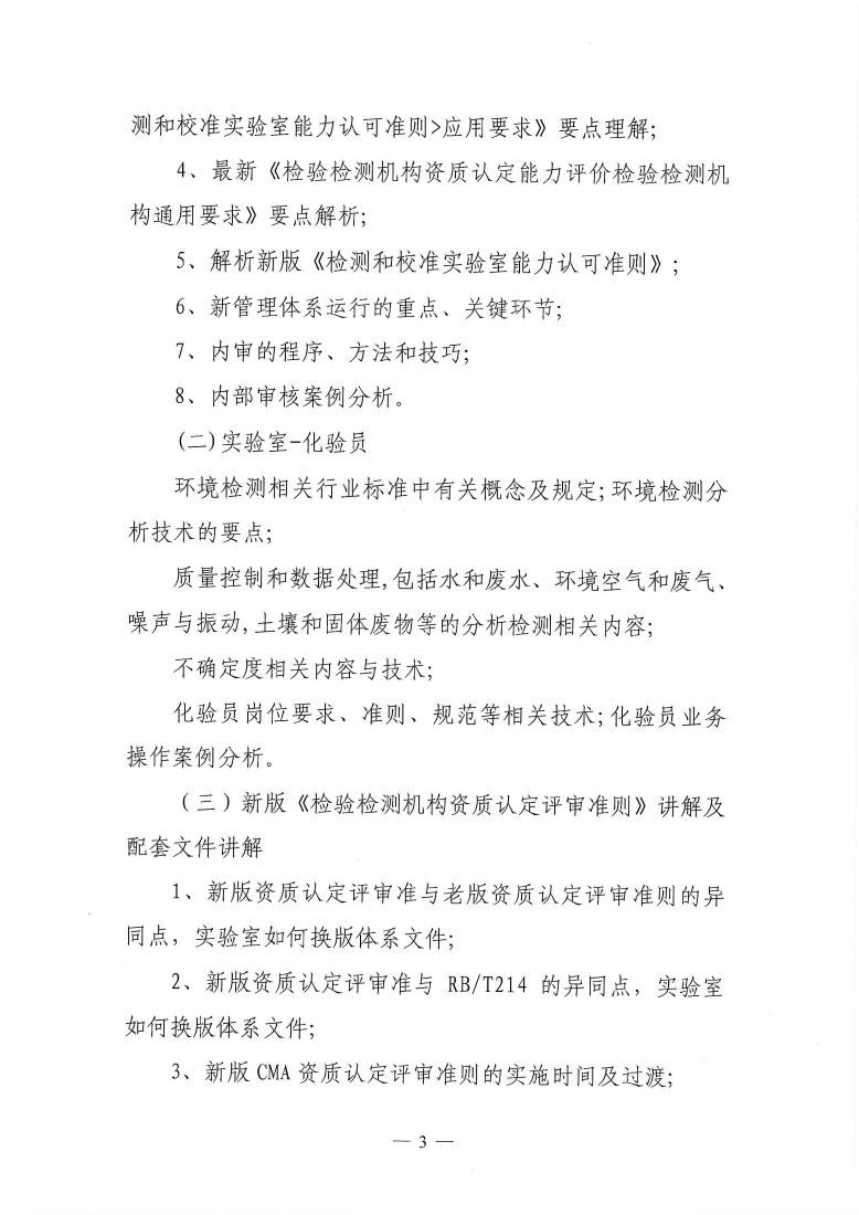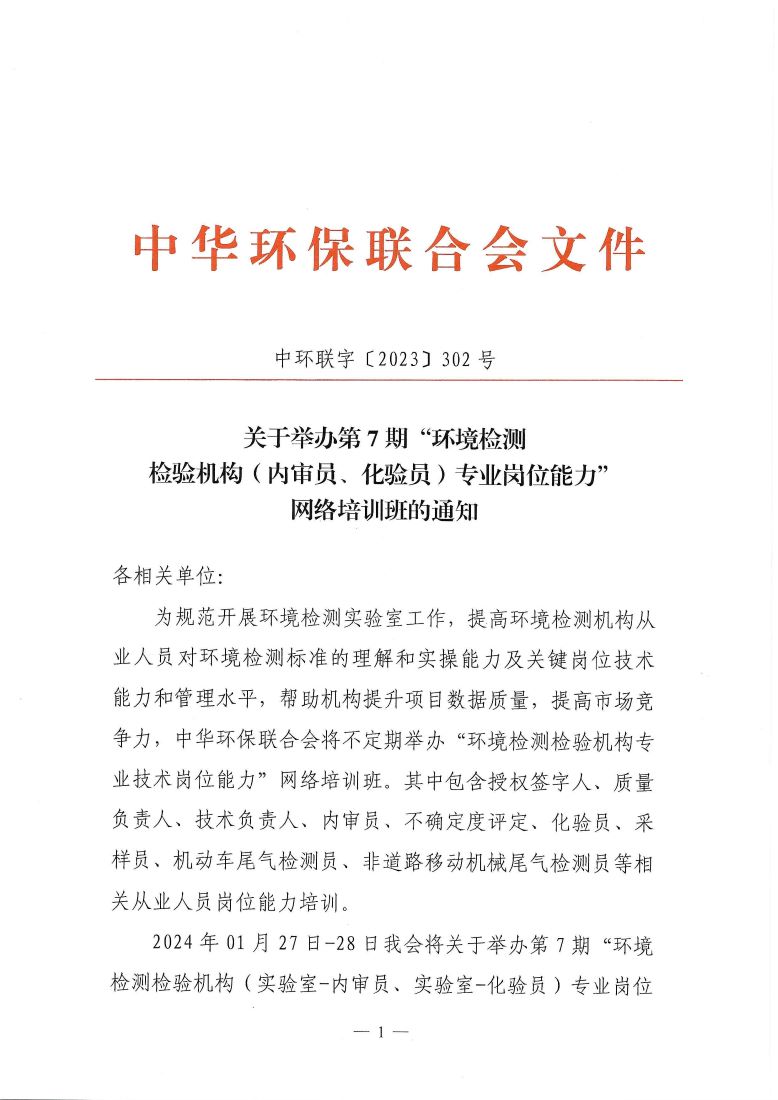 关于举办第7期“环境检测检验机构(内审员、化验员)专业岗位能力”网络培训班的通知
