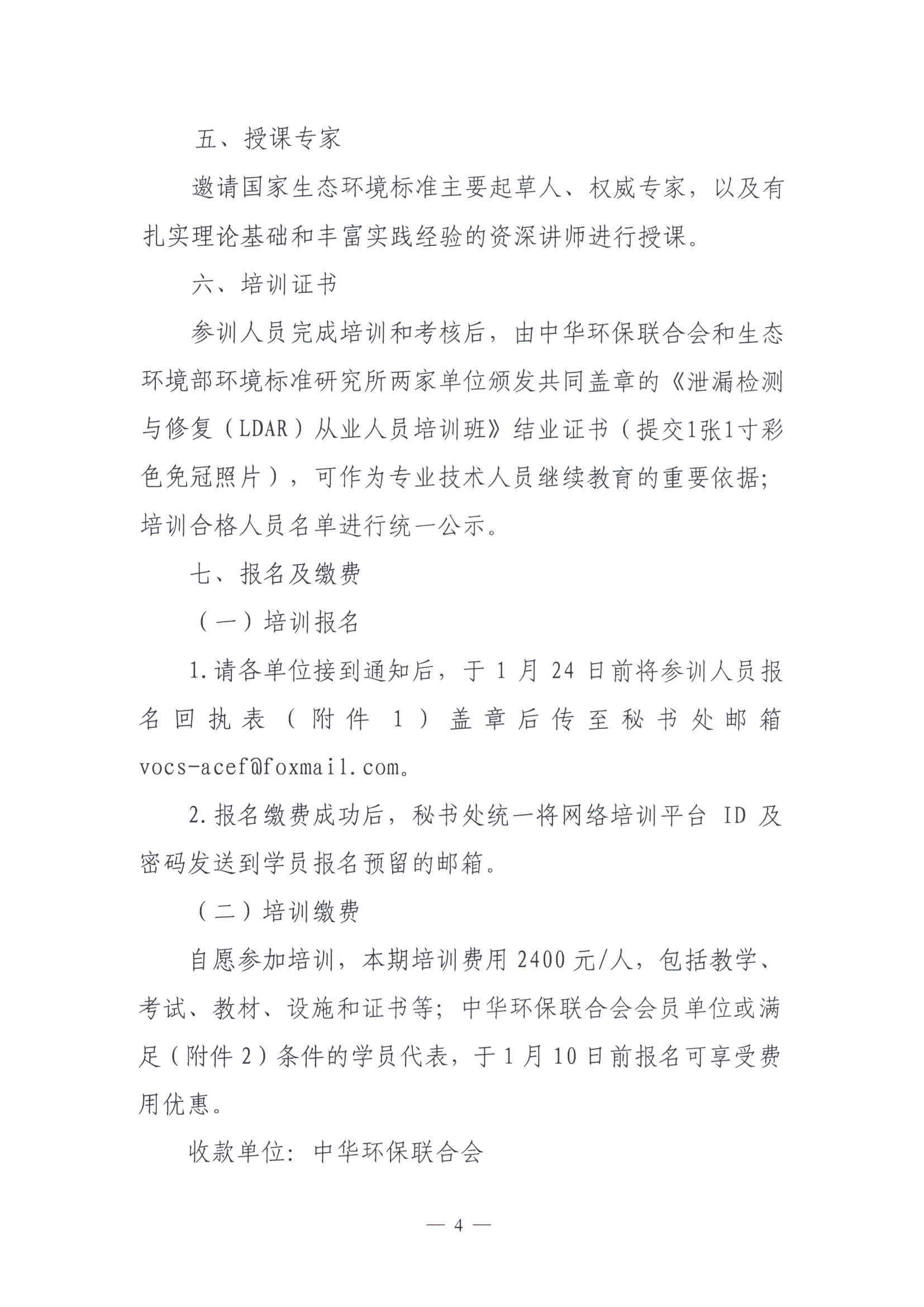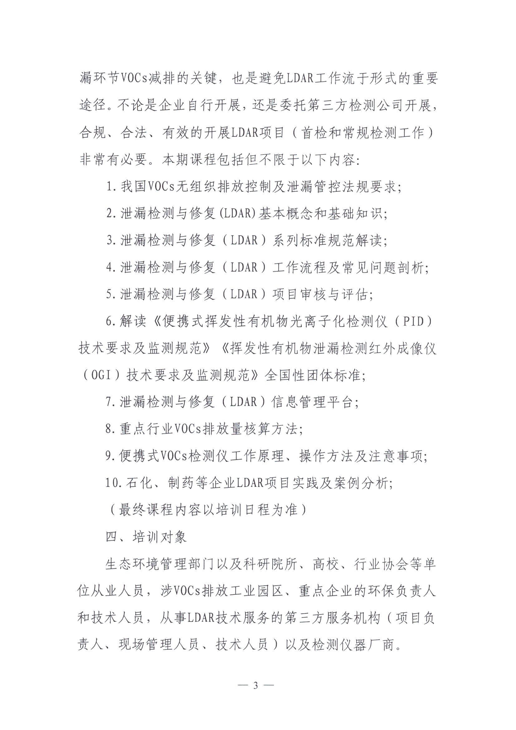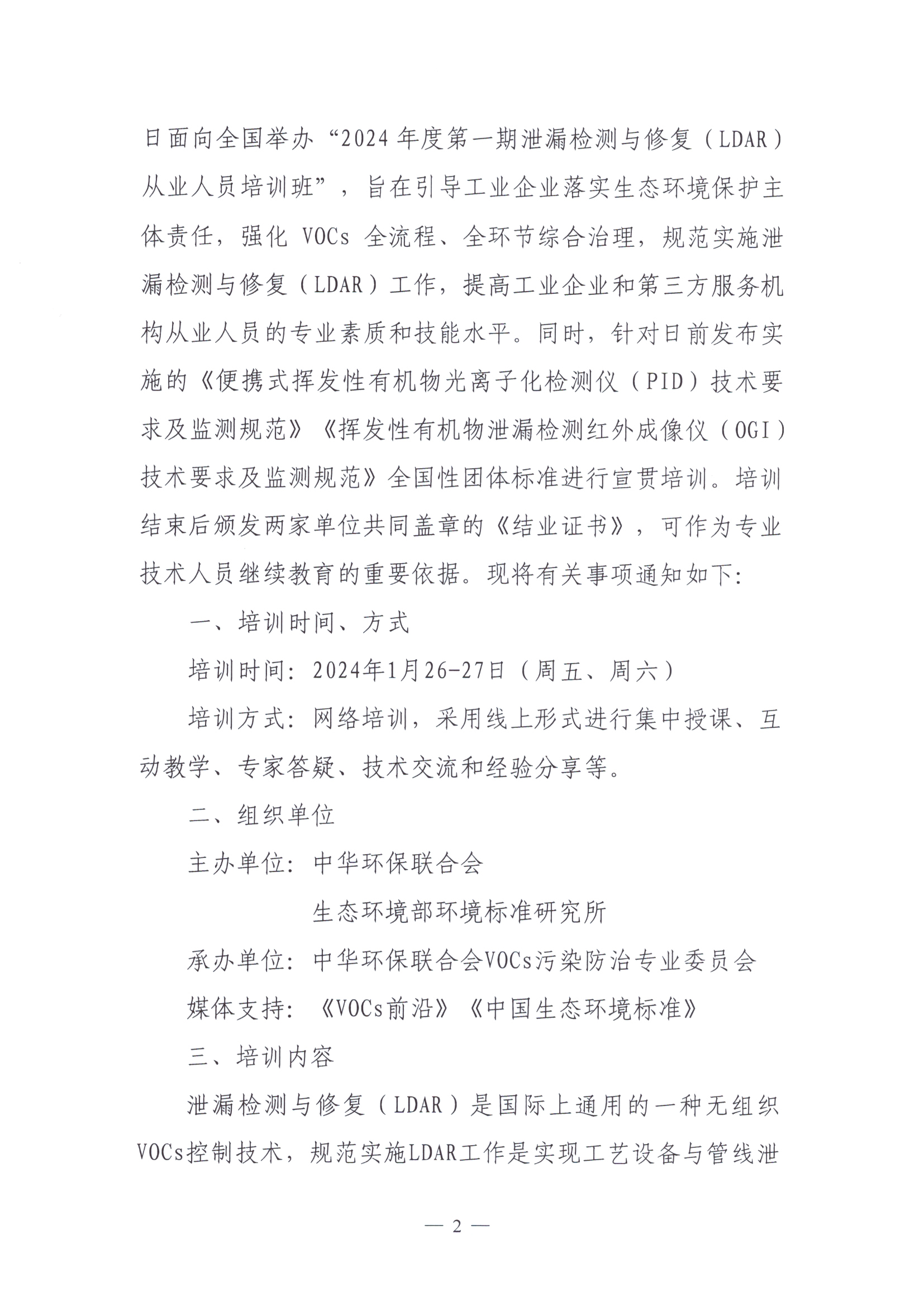 关于举办2024年度第一期泄漏检测与修复(LDAR)从业人员培训班的通知