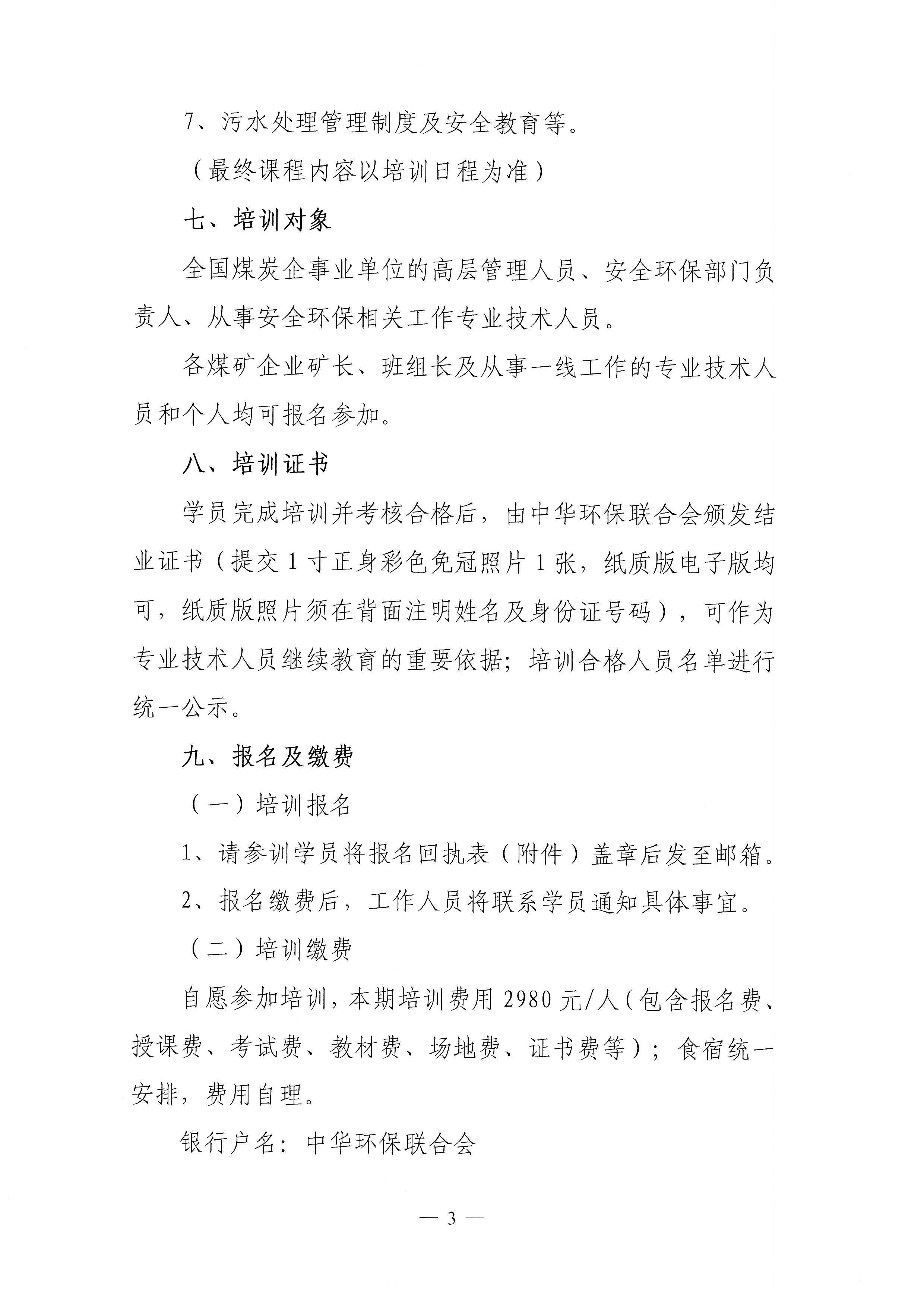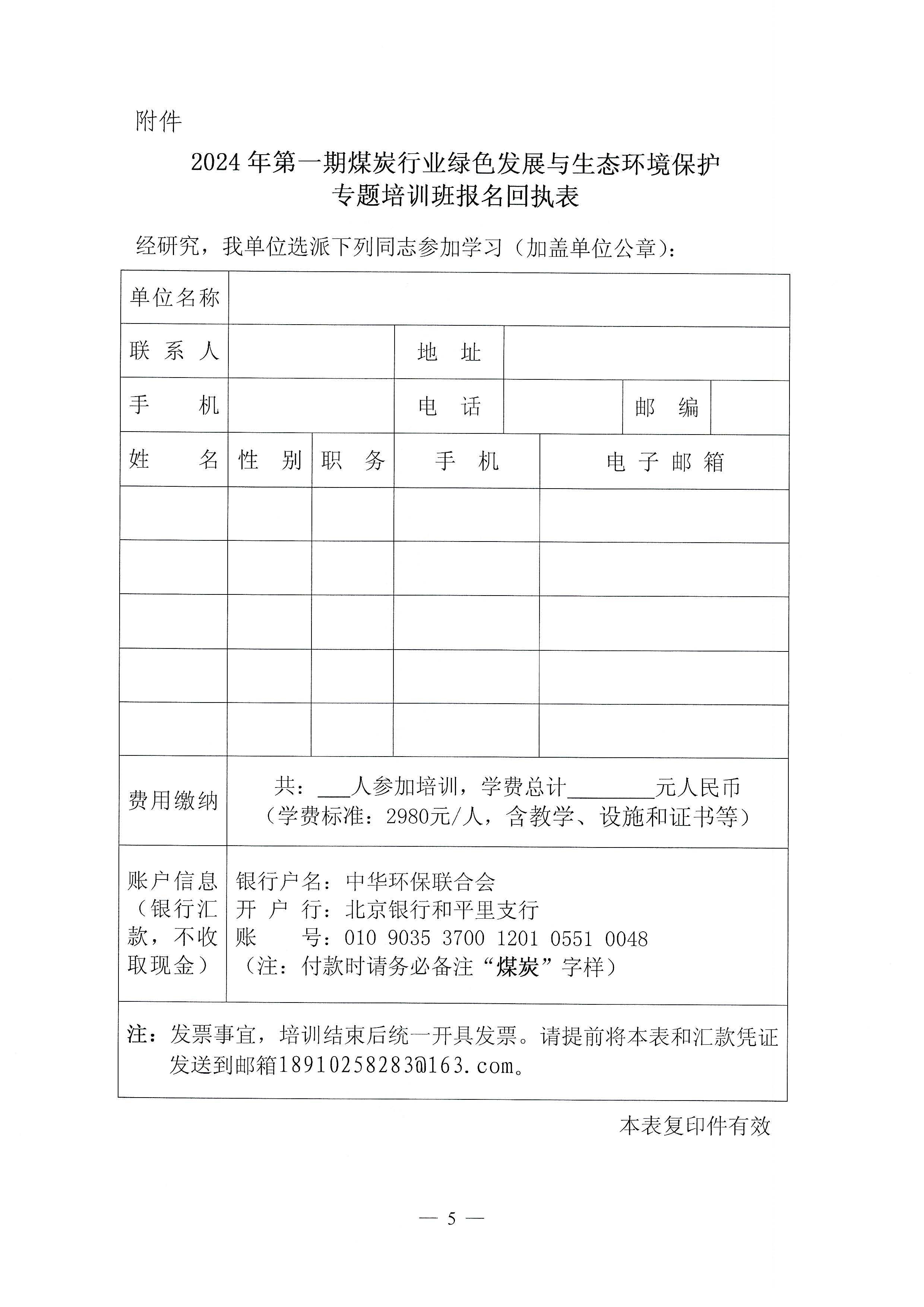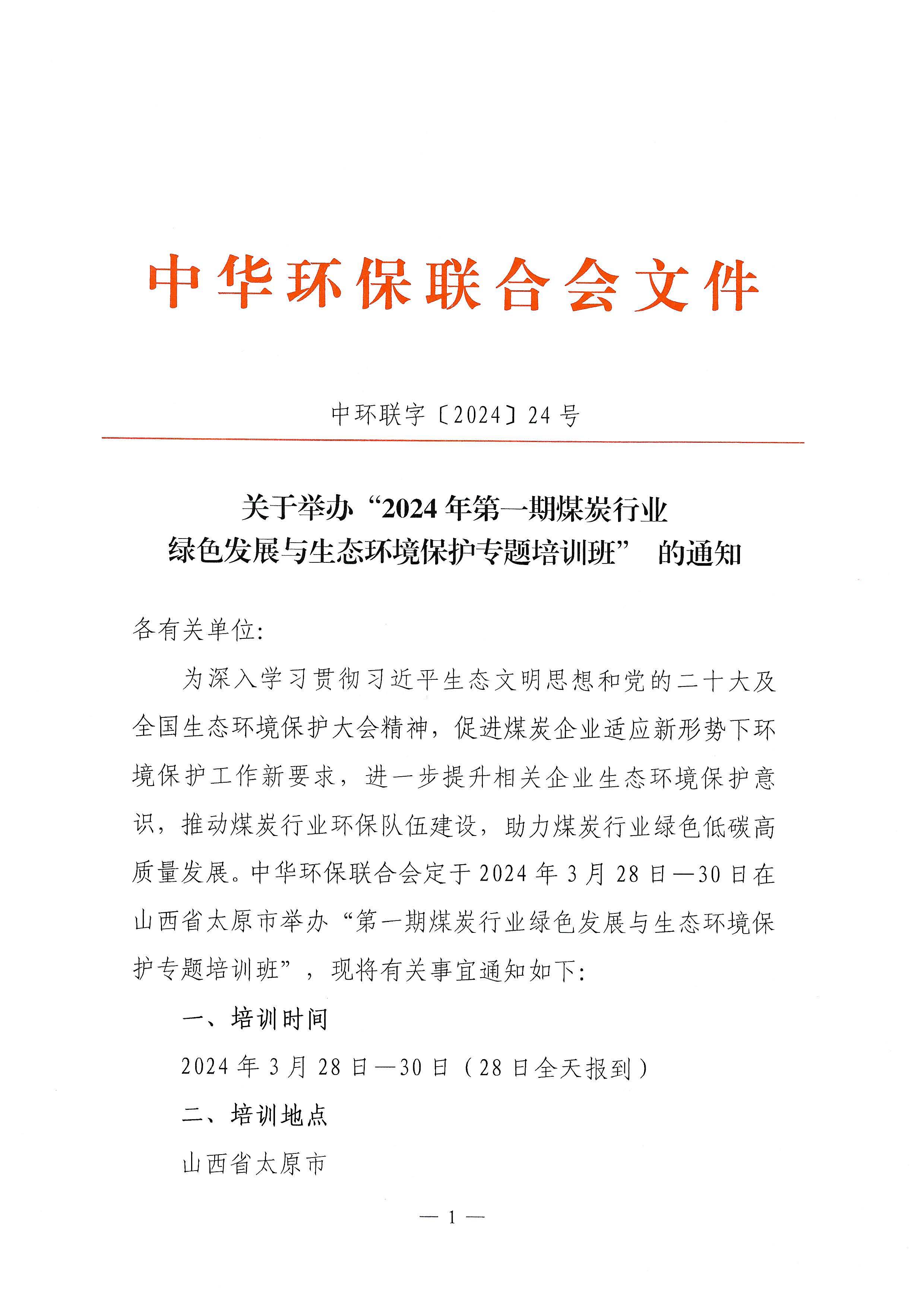 关于举办“2024年第一期煤炭行业绿色发展与生态环境保护专题培训班”通知