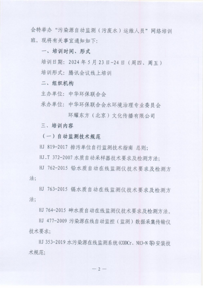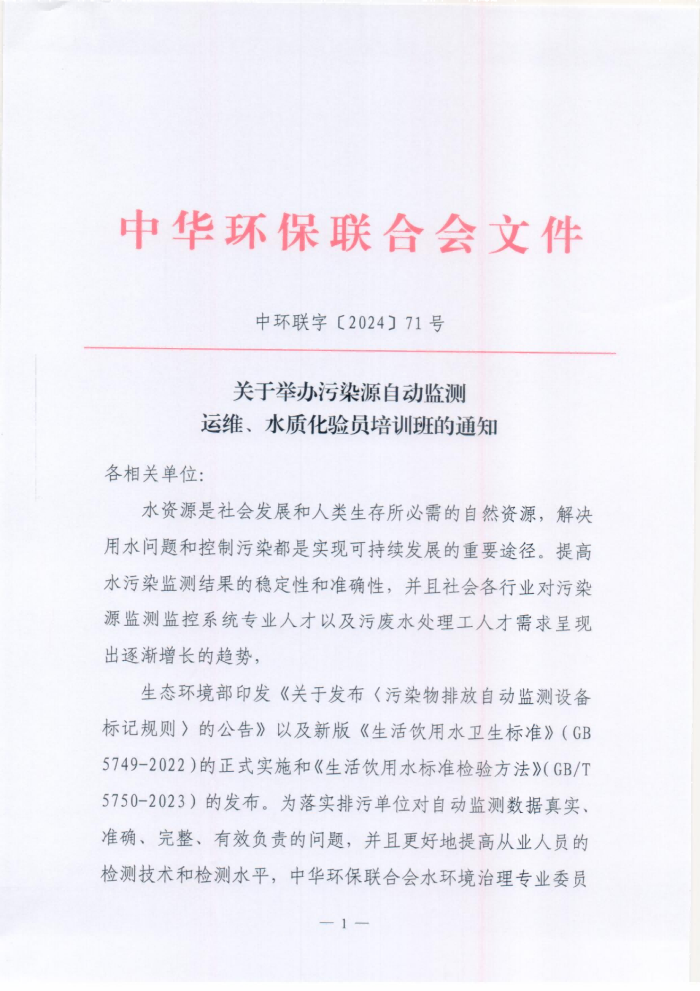 关于举办污染源自动监测运维、水质化验员培训班的通知