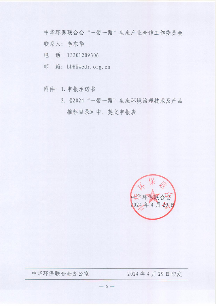 关于征集编写 2024“一带一路’生态环境治理技术及产品推荐目录的通知