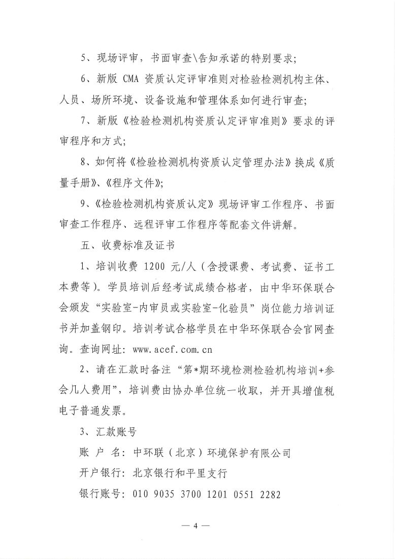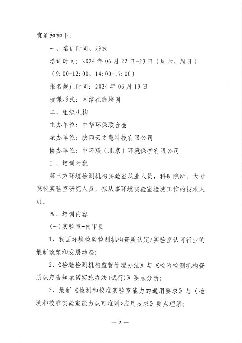 关于举办第9期“环境检测检验机构(内审员、化验员)专业岗位能力”网络培训班的通知