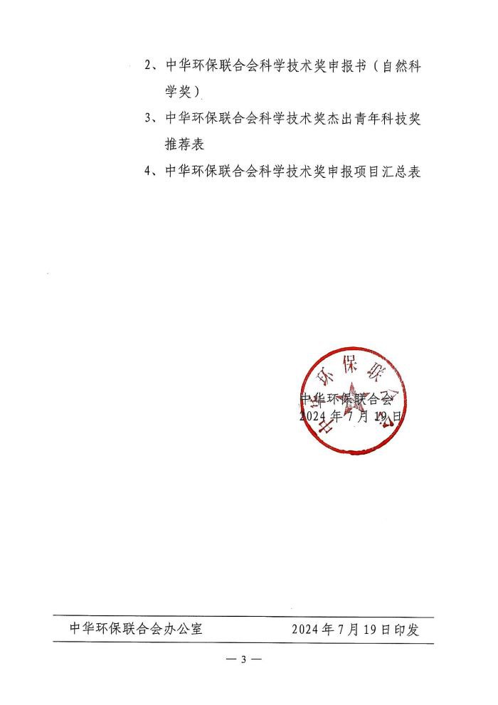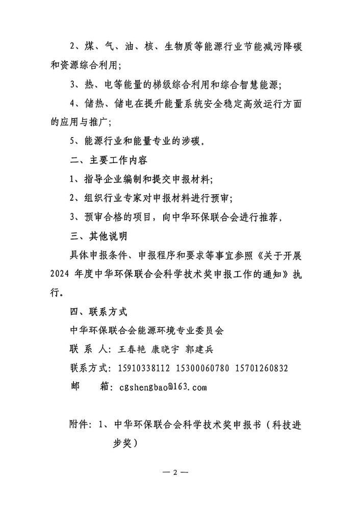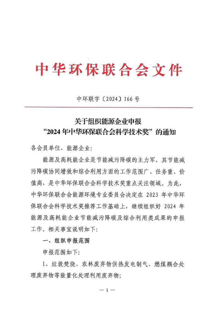 关于组织能源企业申报“2024年中华环保联合会科学技术奖”的通知