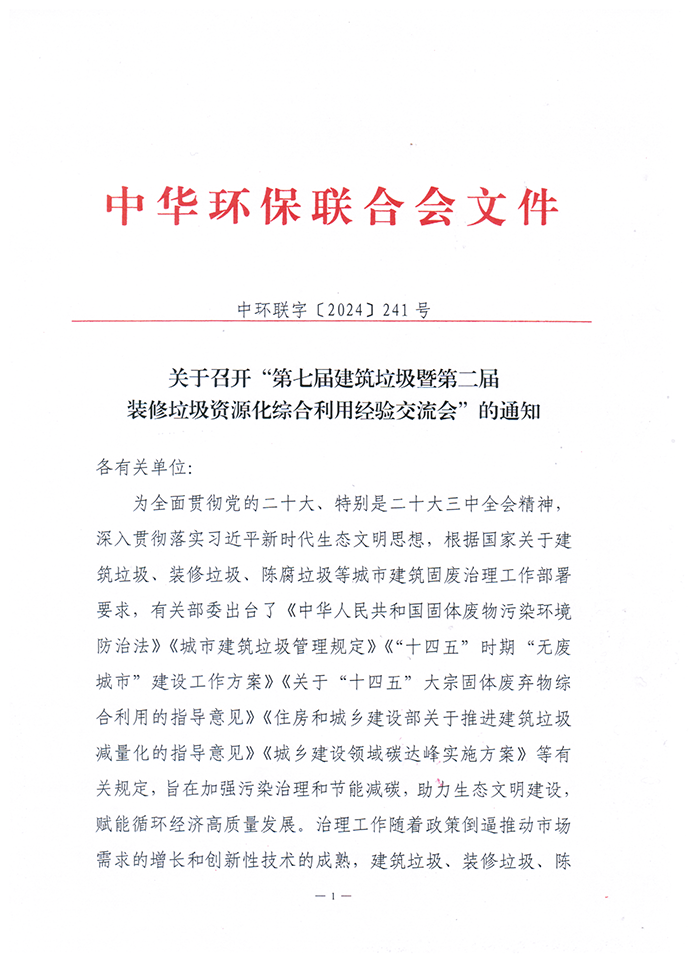 关于召开“第七届建筑垃圾暨第二届装修垃圾资源化综合利用经验交流会”的通知