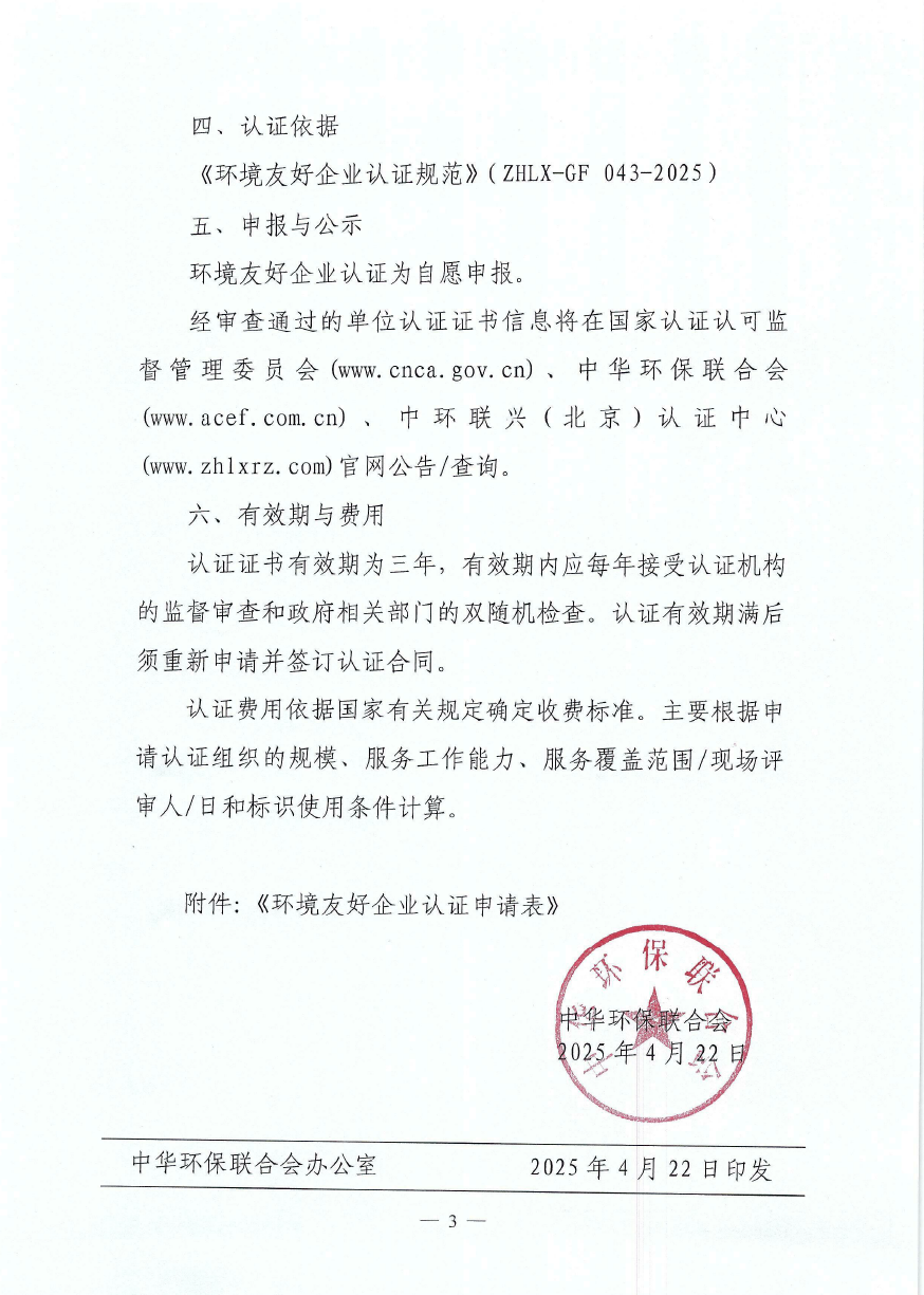 关于开展环境友好企业认证工作的通知