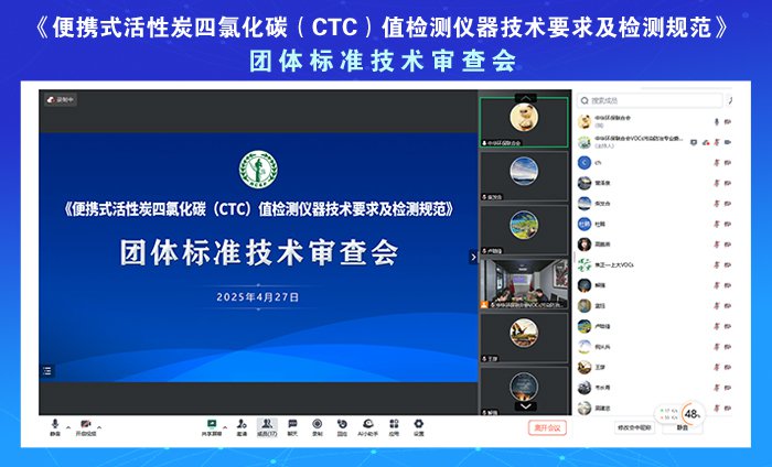 2025年4月27日,依据国家标准委、民政部《团体标准管理规定》以及《中华环保联合会团体标准管理办法(试行)》等相关规定,中华环保联合会以视频会议形式组织召开了《便携式活性炭四氯化碳(CTC)值检测仪器技术要求及检测规范》团体标准(初稿)技术审查会。专家们从技术要求的合理性、检测方法的科学性、规范内容的完整性以及实际应用的可行性等多个维度展开了热烈讨论与深入分析,提出了诸多宝贵意见与专业建议。