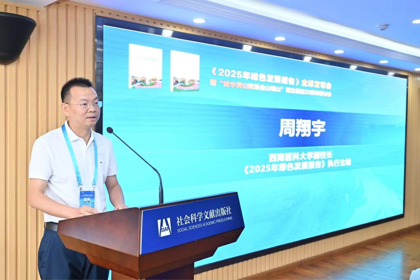 周翔宇表示,作为《2025年绿色发展报告》的研究编写单位,从安吉余村的矿山到泸州长江的碧波,从西南医大的实验室到成渝双城的科创走廊,“绿水青山就是金山银山”的理念已深深融入中国式现代化的血脉。当泸州张坝百年桂圆林迎来新一季丰收,当赤水河畔的金沙鲤鲈重现踪迹,我们愈加坚信:绿水青山既是自然财富,更是发展资本、民生福祉。让我们以此次报告发布为号角,以绿色为底色,以创新为画笔,共同书写人与自然和谐共生的中国式现代化新篇章。
