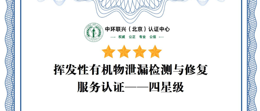 海南瑞达检测荣获国内首个挥发性有机物泄漏检测与修复服务认证四星认证