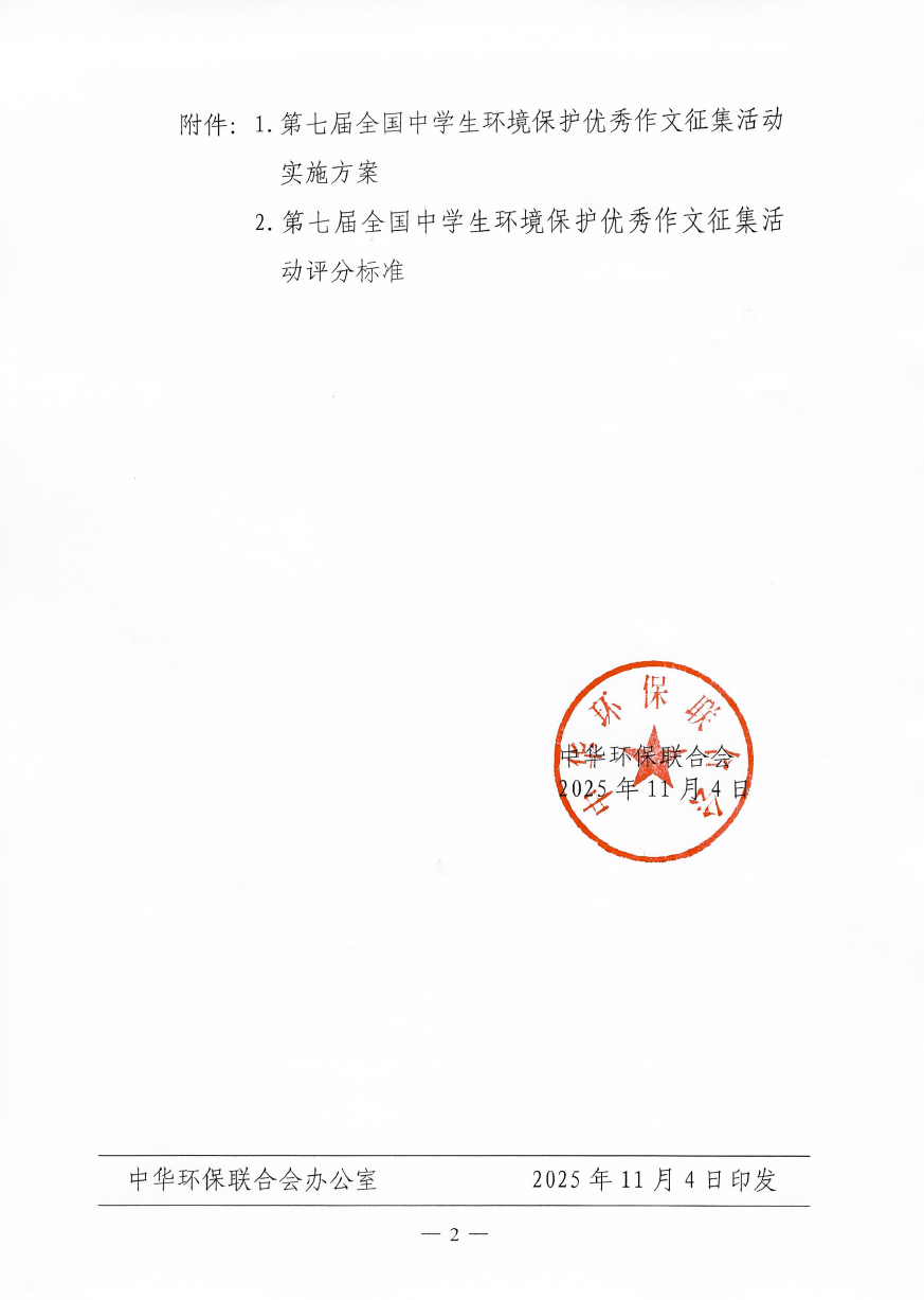 关于举办第七届全国中学生环境保护优秀作文征集活动的通知