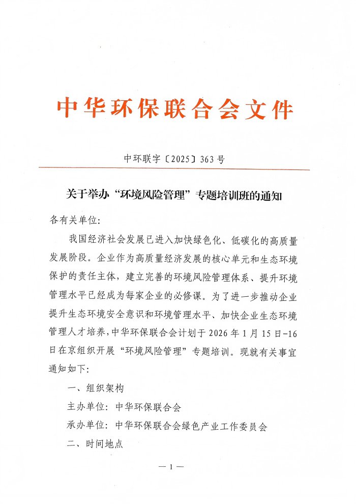 关于举办“环境风险管理”专题培训班的通知