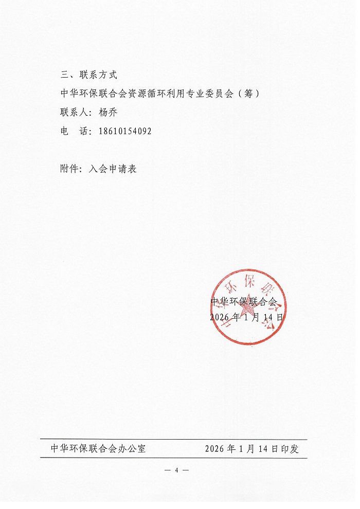 关于邀请加人中华环保联合会资源循环利用专业委员会委员单位(筹)的函