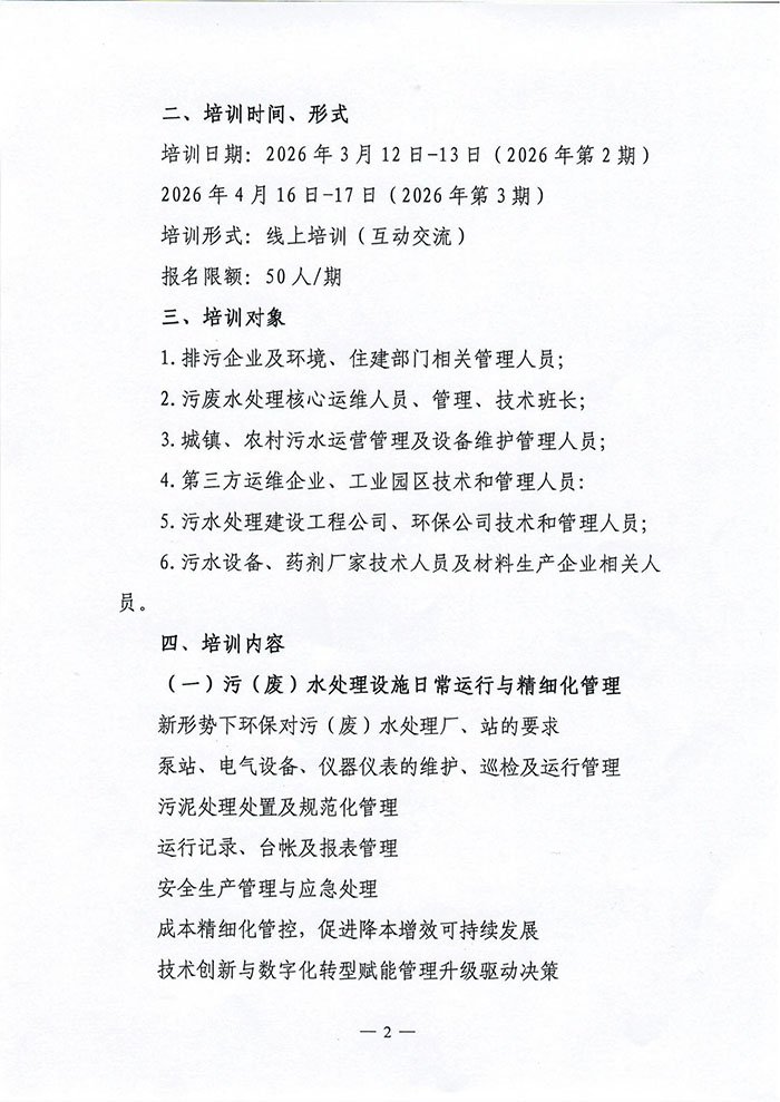 关于举办"污(废)水处理、污染源自动监测"运维管理人员培训班的通知