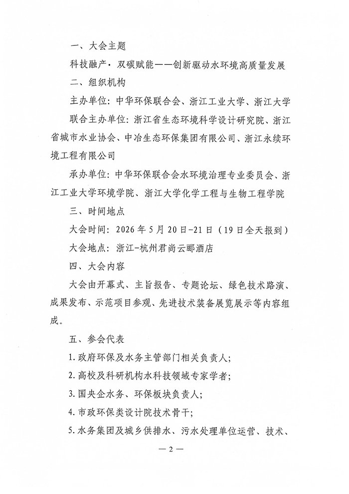 关于举办“2026全国水科技大会暨技术装备成果展览会”的第二轮通知