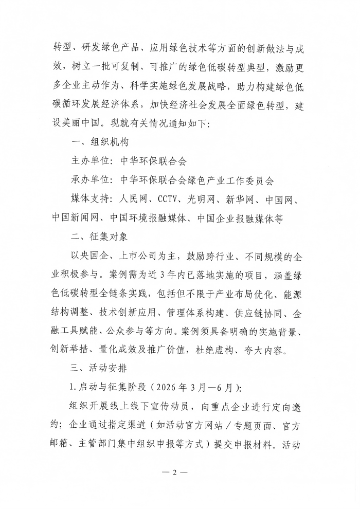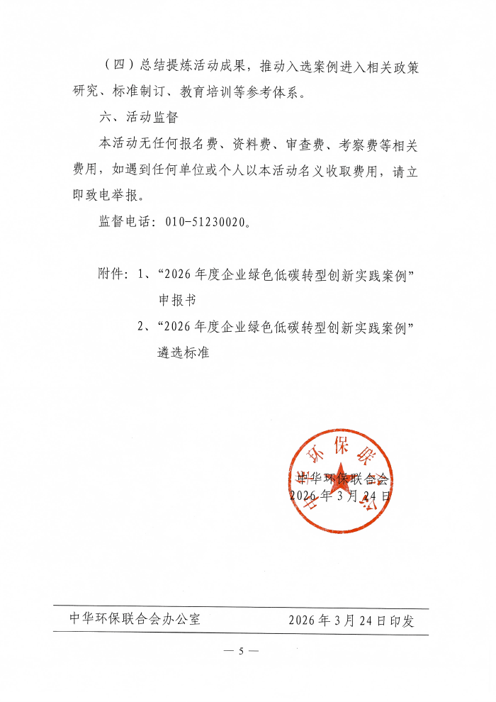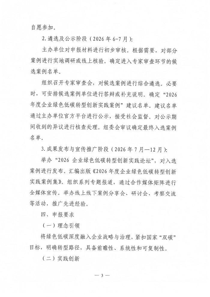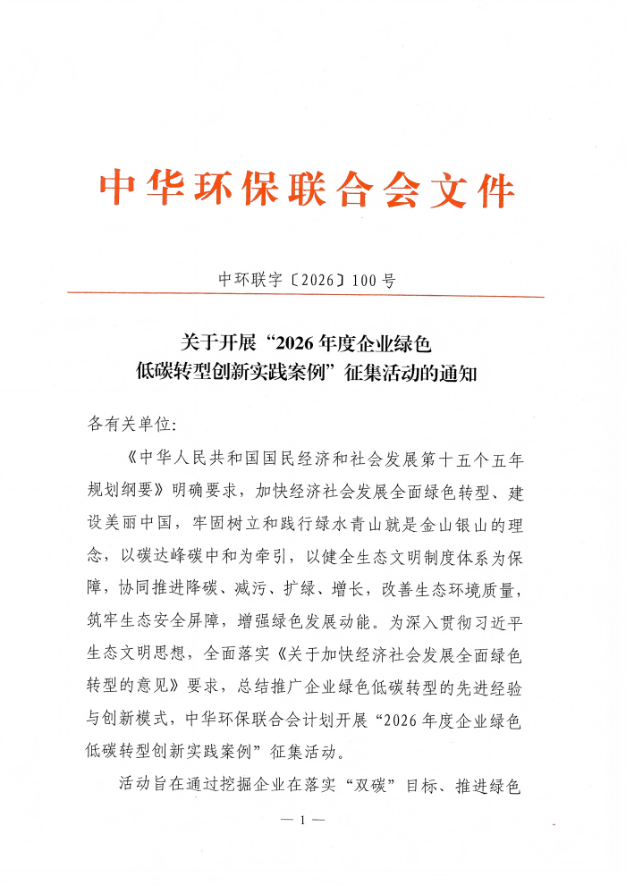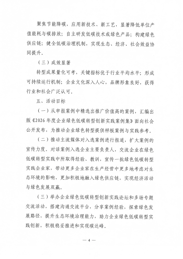 关于开展“2026年度企业绿色低碳转型创新实践案例”征集活动的通知