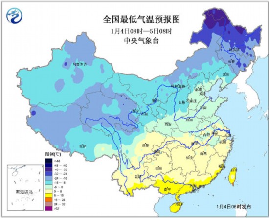 4日08时至5日08时,新疆北部、内蒙古中部和东南部、辽宁西部等地有小到中雪或阵雪,其中,新疆伊犁河谷的局部地区大雪;贵州西部有小雨或阵雨;新疆北部等地有4~6级风,其中山口地区风力可达8~9级。