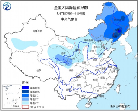 预计今天白天到夜间,随着较强冷空气的南下,大风降温天气将主导今日北方的天气。预计,新疆南疆盆地、西北地区中东部、内蒙古大部、东北大部、华北大部将有4~8℃的降温,局部地区的降幅可达10~12℃;另外,上述大部地区还将伴有4~6级偏北风。