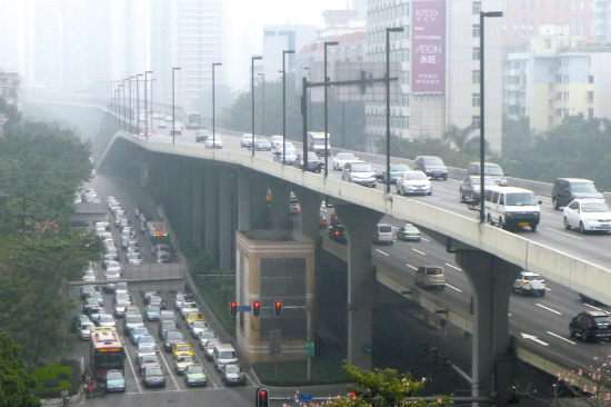 东山口车龙加雾霾 郑迅 摄(资料图片)