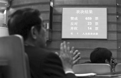 昨日,市人大代表鼓掌祝贺《北京市大气污染防治条例》表决通过。这是继2001年后,北京再次在市人代会上对地方性法规进行审议。当日,北京第十四届人民代表大会第二次会议闭幕。记者 浦峰 摄