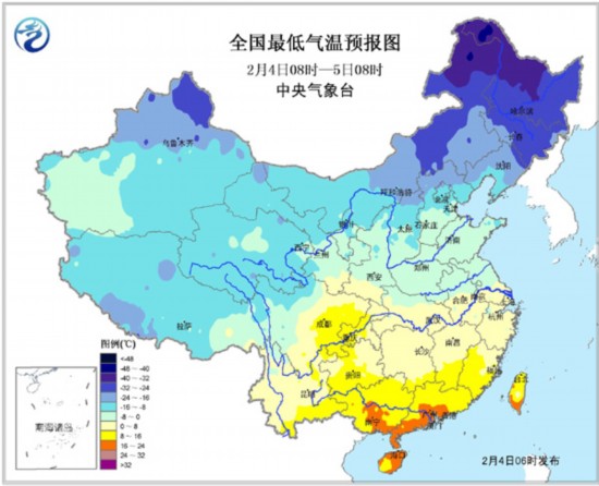 强冷空气对我国的影响趋于减弱,大部地区风力减小,强降温区范围明显缩小,因此解除寒潮蓝色预警。但4日08时至5日08时,西北地区东南部、西南地区东部、江南、华南北部等地气温仍将下降4~6℃,局地降温幅度可达8℃左右。;东海大部及其以南部分海域有7~8级大风,阵风可达9级。