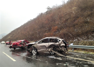 因路面结冰,高速S49随州境内发生多起事故。新京报记者 吴江 摄
