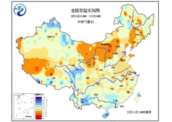 自昨日起,南方地区的雨雪天气明显减弱。今日8时至14时,南方大部基本无降水。下午14时,南方地区气温与昨日同时次相比开始缓慢回升。