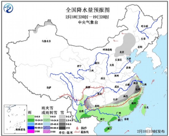 今天,自16日起造访我国的大范围雨雪天气上演最后的“疯狂”,特别是在淮河以南的大部地区,雨、雪、雨夹雪在不同地方轮番上演。监测显示,8至14时,安徽南部、江苏南部、浙江北部、江西北部、湖南中南部、贵州中南部、云南中东部等地降水量普遍有2~9毫米,其中浙江北部、江西北部和云南中东部等地的局地12~18毫米。