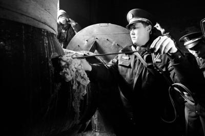 昨日,平谷,环保局工作人员对正在作业的锅炉进行排放检测。 拍者 金硕 摄