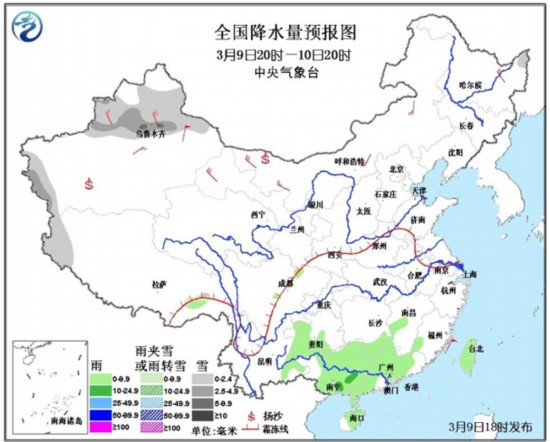另外,从11日开始,南方大部将再次迎来新一轮的降水天气过程,其中,长江中下游部分地区将出现中到大雨,局部地区有暴雨。