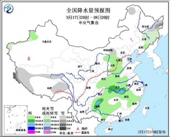 明日起,受冷空气和暖湿气流共同影响,南方地区的雨水势力将增强。预计今天夜间到明天白天,华北西部、黄淮西部、江汉、江淮西部、江南中西部、华南西部、贵州等地有小雨或阵雨,其中湖北南部、贵州中部等地还将有中到大雨天气。