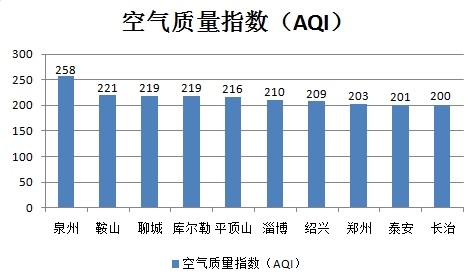 人民网北京4月12日电 (初梓瑞)根据环保部公布的最新数据,截至今日11时,泉州的AQI(空气质量指数)258,属于严重污染,成为161个参与空气质量排名的城市中空气质量最差的城市。今日空气质量最差的10个城市分别是泉州、鞍山、聊城、库尔勒、平顶山、淄博、绍兴、郑州、泰安和长治。