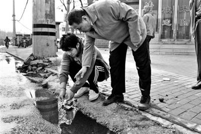 泄漏的盐酸让路面“冒泡” 供图/徐跃
