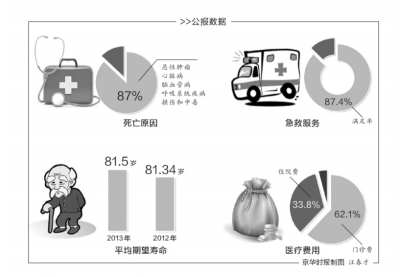 《公报》显示,在疾病谱中,慢性非传染性疾病问题更加突出。2013年,全市居民前五位死因疾病分别为恶性肿瘤、心脏病、脑血管病、呼吸系统疾病、损伤和中毒,占到了全部死因的87%。市卫计委表示,防治慢性非传染性疾病成为北京市保障人民群众健康的主战场。