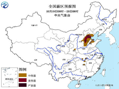 人民网北京10月19日电 (蒋琪)中央气象台10月19日06时继续发布霾黄色预警:预计19日08时至20日08时,北京、天津、河北中南部、山东北部等地的部分地区有中度霾,其中,北京南部、天津、河北西部沿山局地有重度霾。