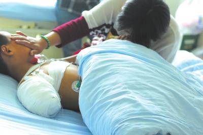 19日7时许,郑州市骨科医院住院部病房内,9岁的小天躺在病床上。18日晚,小天从平顶山转院到郑州市骨科医院,当晚11点左右,完成了右臂开放性截肢手术。“妈妈你别哭了。”小天望着妈妈说。妈妈把头埋在床被上,阵阵哭声让人揪心,“孩子还这么小,以后咋办啊?”