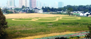 在主城区见到如此大面积的稻田,让居民大呼“惊讶”。然而更令人惊讶的是,在紧邻城墙的一侧,种稻人还用水稻组成了巨大的五环标志。“这块地紧挨着城墙,当时青奥会火炬传递就走过这一段。”有居民说,“8月份的时候,苗都是绿油油的,从城墙上向下看,还挺漂亮的。”