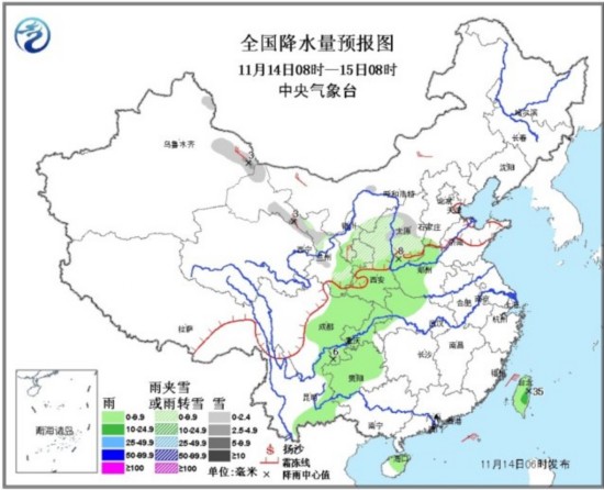 最新预报显示,今天白天到夜间,新疆东北部、甘肃中东部、宁夏南部、陕西北部、山西中南部等地有小到中雪或雨夹雪;陕西中南部、河南中西部、湖北西部及西南地区东部等地有小雨或阵雨。