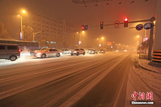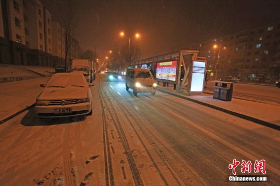 11月30日,吉林市民和车辆在积雪的路上前行。当日是11月的最后一天,吉林省迎来今年入冬以来最明显的降雪降温天气,不仅大到暴雪光临,气温也将一路跳水,局地降温20℃。吉林省气象部门29日发布明显降雪、大风和寒潮降温预报,预计从今天至12月3日吉林省将出现入冬以来最明显的一次降雪降温大风天气过程。 中新社发 图片来源:CNSPHOTO