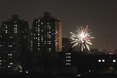 昨天是元宵节,有市民在海淀区大钟寺附近燃放烟花。相比去年元宵夜,昨夜的烟花燃放量不大。新京报记者 浦峰 摄